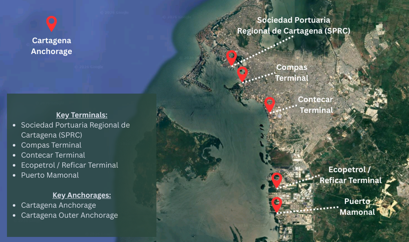 Deliveries arranged among others at Cartagena anchorage, Contecar & Compas Terminals and Sociedad Portuaria Regional de Cartagena