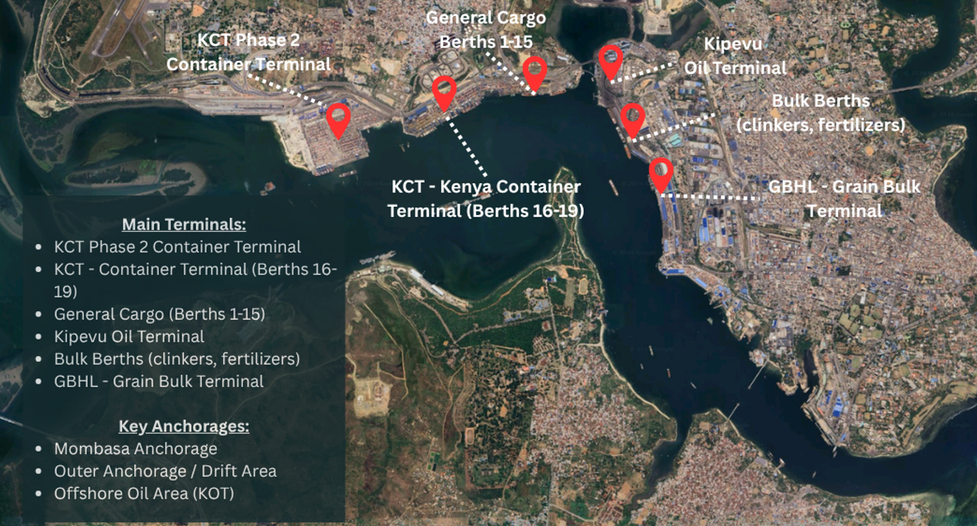 Deliveries arranged among others at Mombasa anchorage, KCT Container Terminal, General Cargo Berths and GBHL - Grain Bulk Terminal